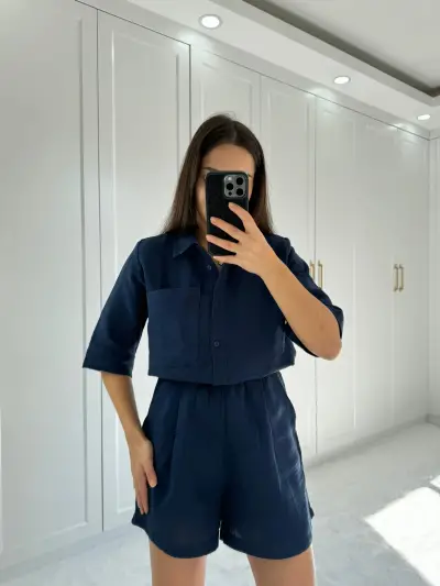 BÜRÜMCÜK KUMAŞ ŞORTLU TAKIM LACİVERT RENK